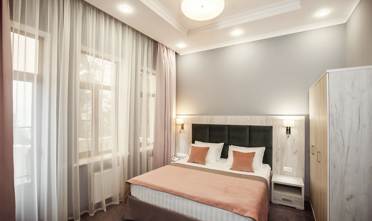 - Стандартные номера — оптимальный выбор для двухместного размещения с уютным интерьером и всеми базовыми удобствами.